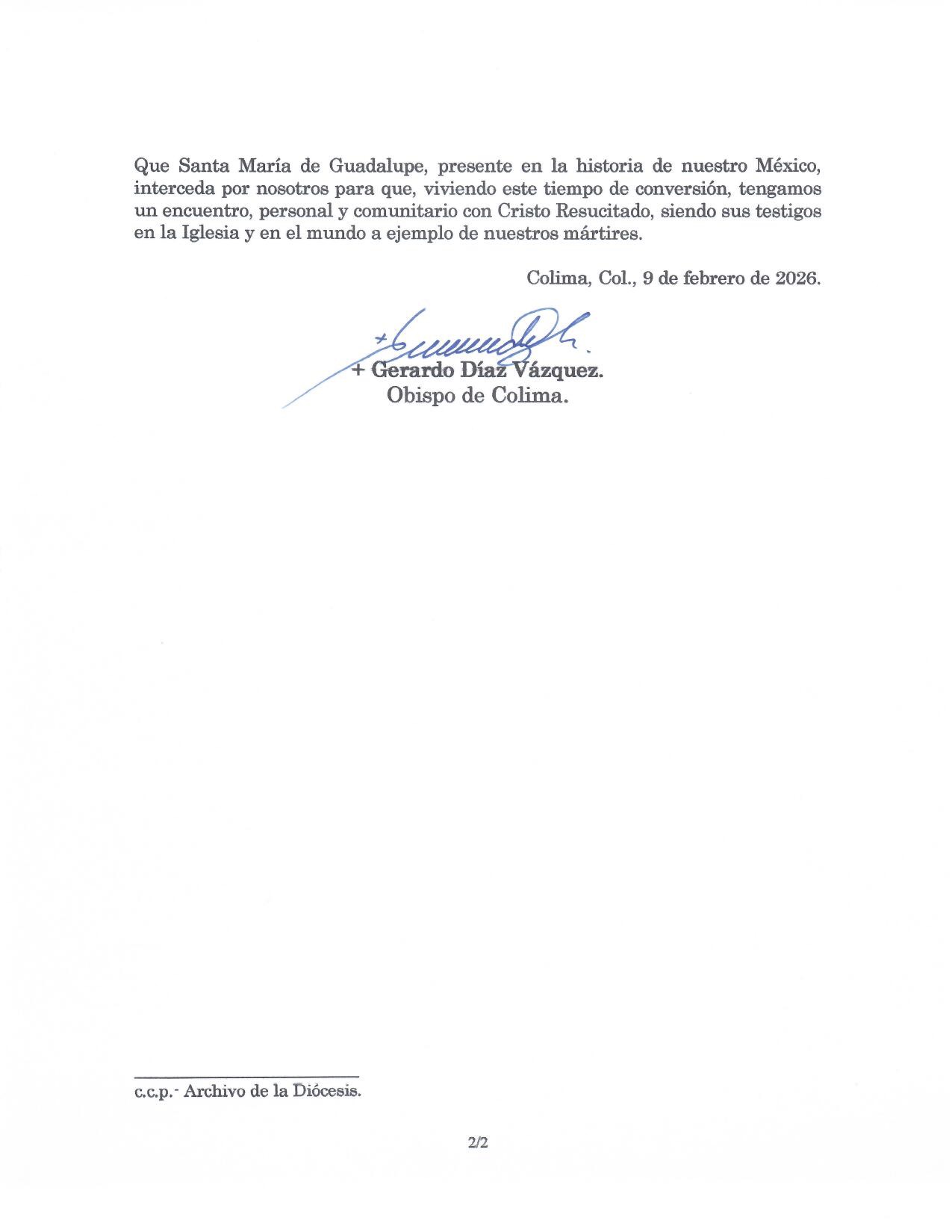 Que Santa María de Guadalupe, presente en la historia de nuestro México, interceda por nosotros para que, viviendo este tiempo de conversión, tengamos un encuentro, personal y comunitario con Cristo Resucitado, siendo sus testigos en la Iglesia y en el mundo a ejemplo de nuestros mártires.